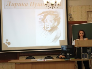 Студенты выступили с докладами по заданной теме. Собравшиеся обсудили проблемы преподавания творчества А. С. Пушкина в современной школе. Особое внимание было уделено традиционным и новаторским формам изучения творческого наследия поэта: написанию сочинений, изложений, проведению олимпиад, викторин, конкурсов и т. д.