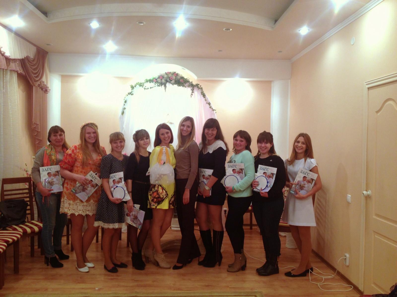 В завершении вечера дружным девичьим коллективом решили сшить куклу-невесту и оставить ее на память в отделе ЗАГС, может быть, это станет новой традиции! Сотрудники ЗАГС не оставили без внимания участниц и тоже подарили им памятные сувениры – это пяльцы с лоскутом ткани, девушки с энтузиазмом приняли такой подарок, многие теперь захотят заняться рукоделием и дома.