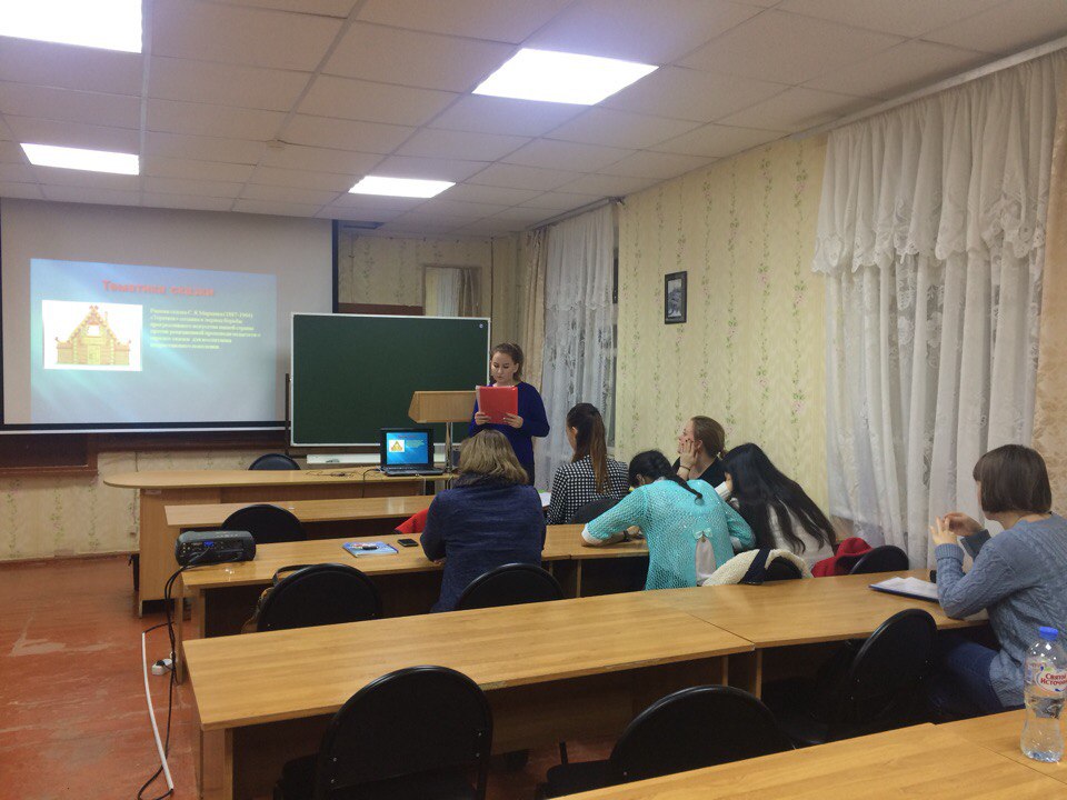 Студенты группы ПЕ-11 выступили с докладами, в которых рассказали о новаторских художественных формах в творчестве советского поэта, его умении видеть перспективу жизни сосем ещё маленького ребенка, прослеживать связь детства, отрочества, юности со зрелостью. Выступавшие обратили внимание слушателей на то, что именно народное творчество стало основой идей и образов сказок С. Я. Маршака («Двенадцати месяцев», «Теремка», «Кошкиного дома» и пр.). Прозвучали строки таких известных стихотворений поэта, как «Детки в клетке», «Багаж», «Почта», «Пожар», «Вот какой рассеянный» и др.